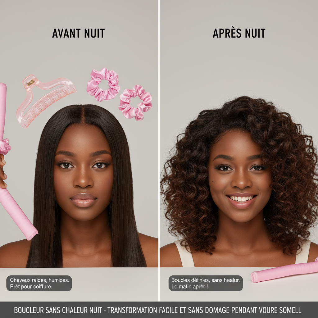Cheveux légèrement humides recommandés pour de meilleures boucles.